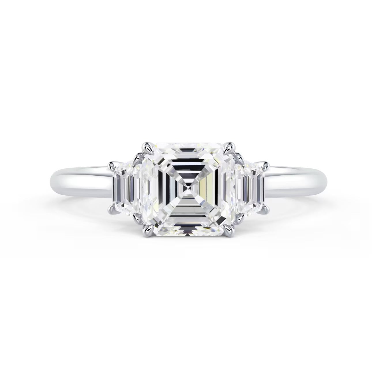 1.50CT Asscher Cut E/VS2 Lab Grown Diamond Three Stone Engagement Rings