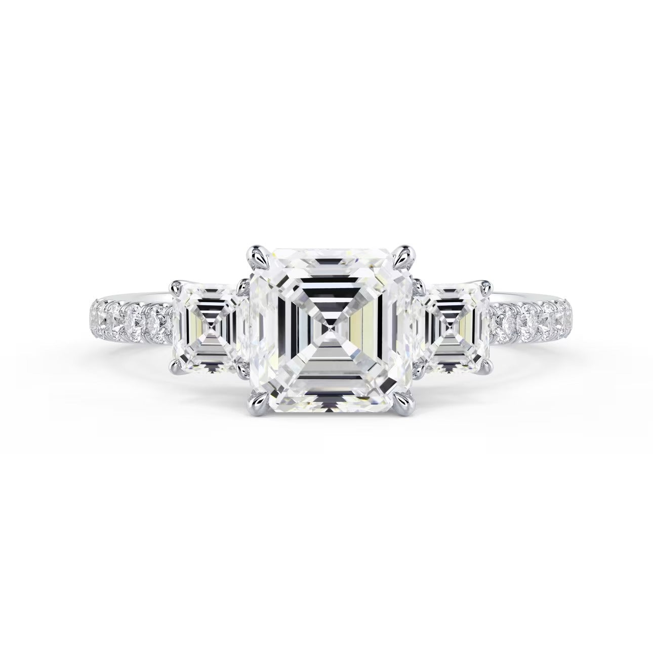 The 1.50CT Asscher E/VS1 Lab Grown Diamond Three Stone Pave Engagement Ring is a stunning symbol of love and commitment, making it a perfect wedding ring or a timeless favorite among elegant engagement rings. Designed for every engagement rings couple, its ethically crafted E/VS1 Asscher cut lab grown diamond sparkles at the center, flanked by two dazzling side stones that represent past, present, and future, all set on a shimmering pave band for added brilliance. A true treasure of romance and style, this design shines among the most unique engagement rings and sophisticated unique diamond rings, beautifully capturing the everlasting elegance of timeless engagement rings.