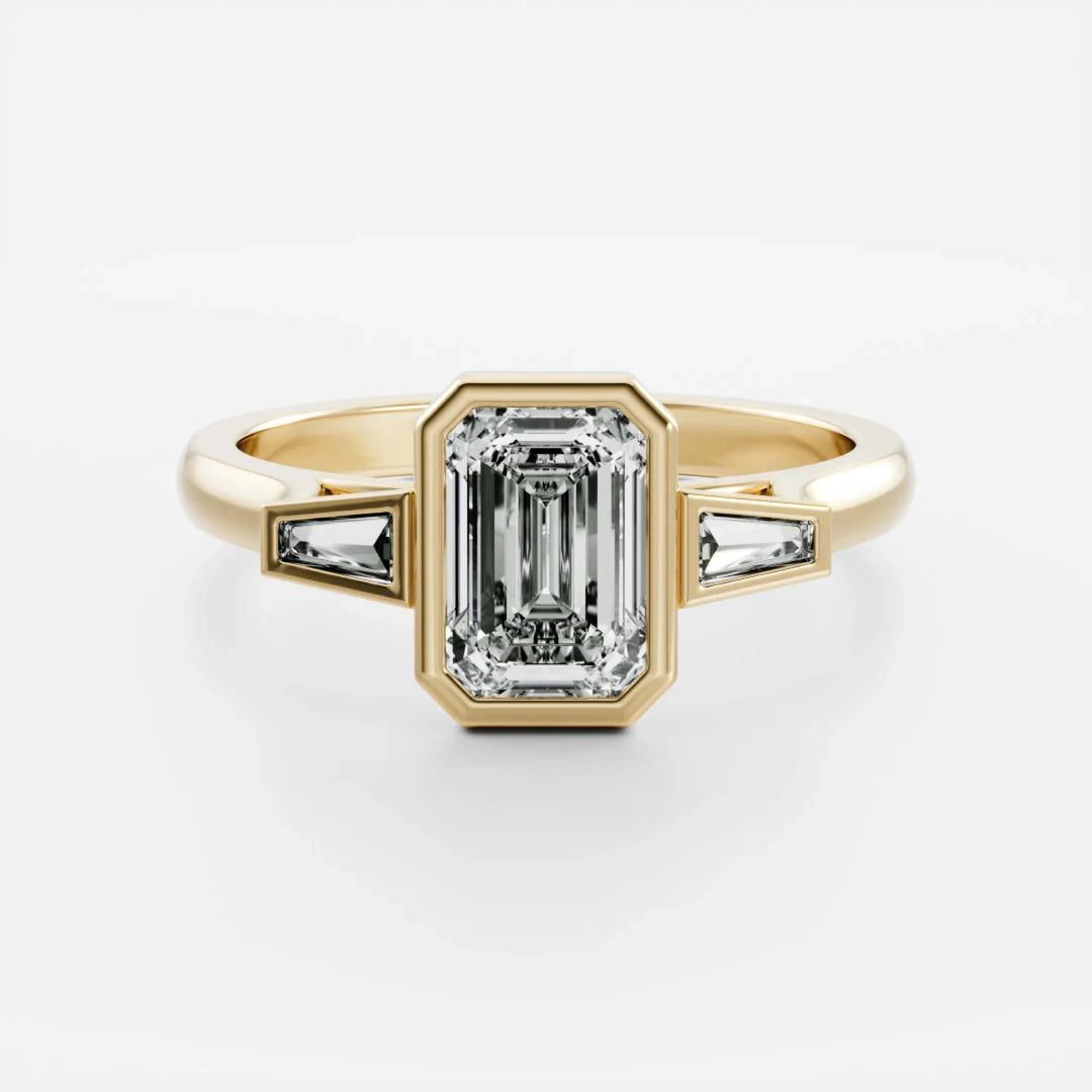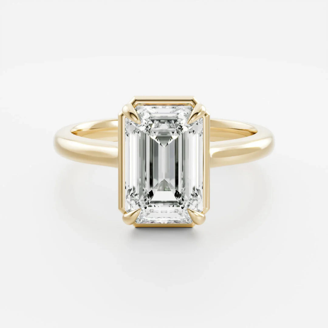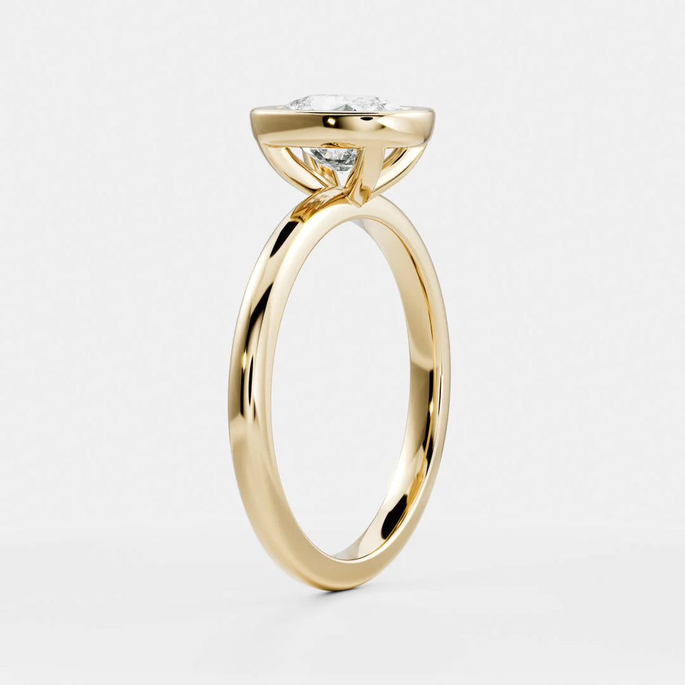 "Modern elegance with a secure embrace—Bezel rings feature a sleek metal rim encircling the diamond, offering a contemporary look with added protection and sophistication."