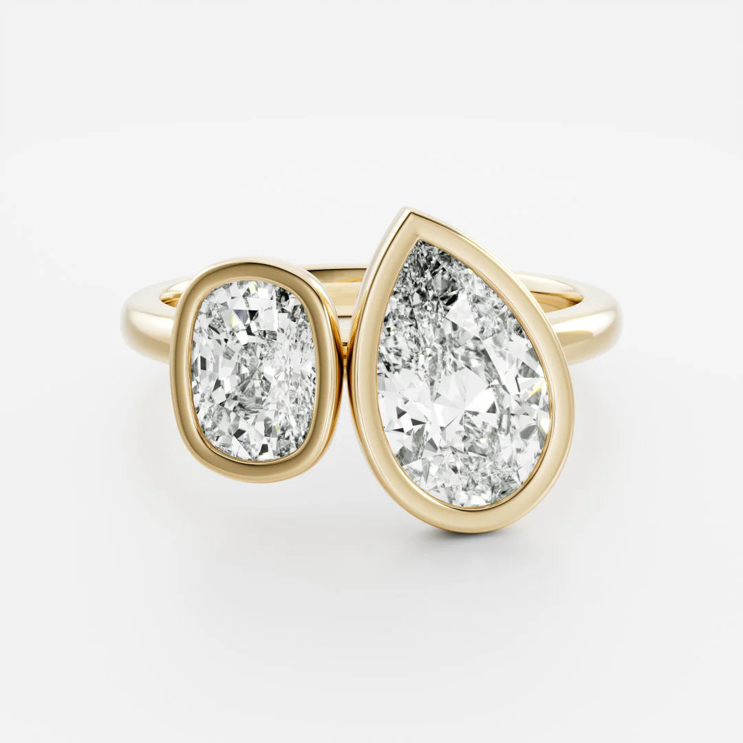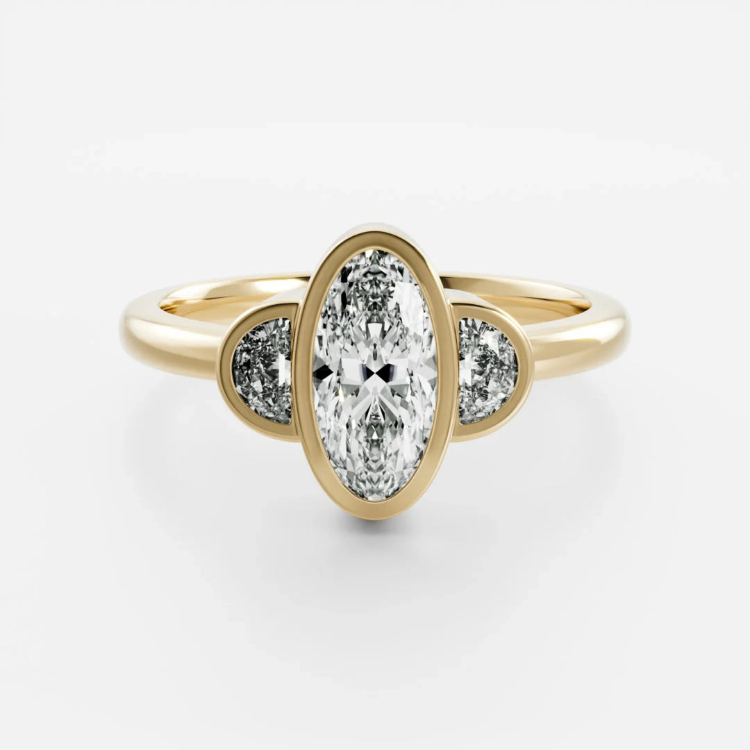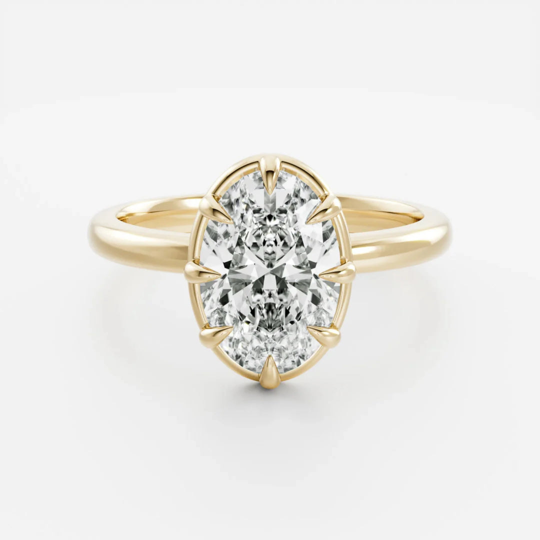 "Modern elegance with a secure embrace—Bezel rings feature a sleek metal rim encircling the diamond, offering a contemporary look with added protection and sophistication."