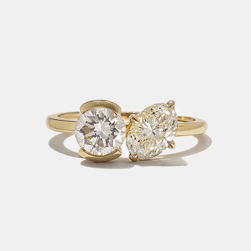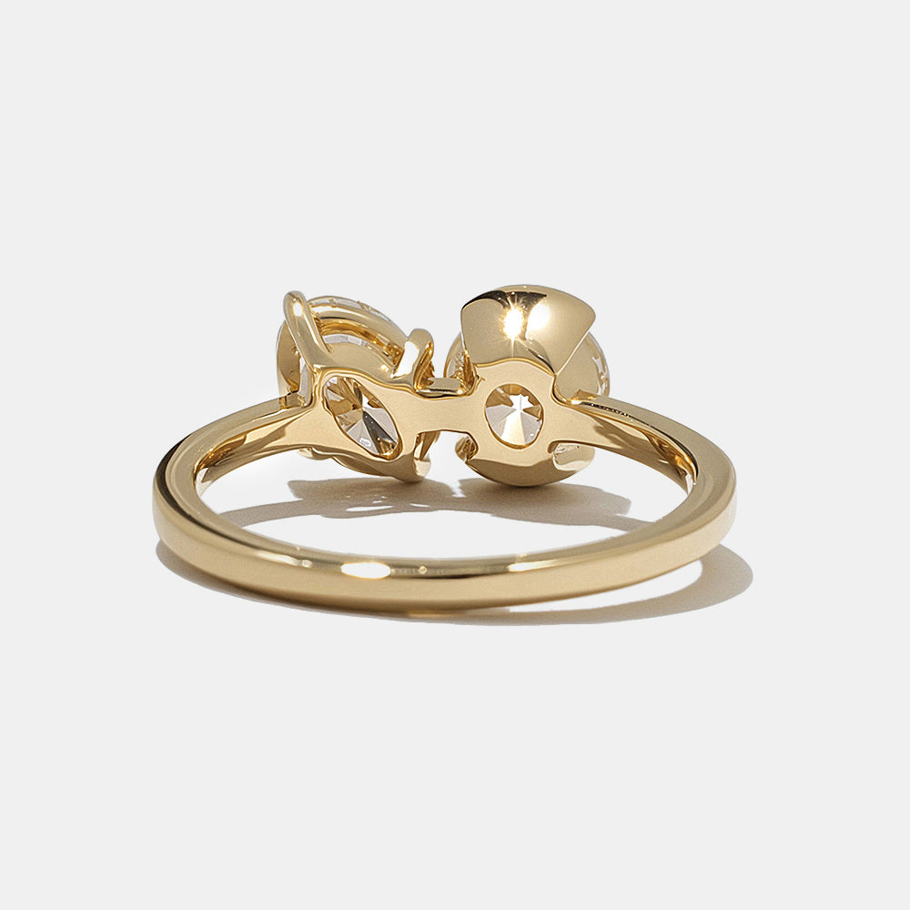 0.80CT Bezel Set Round & Oval Lab Grown Diamond Toi Et Moi Engagement Ring