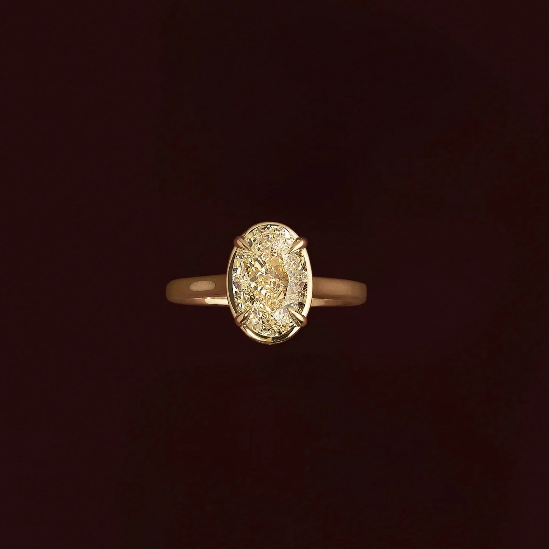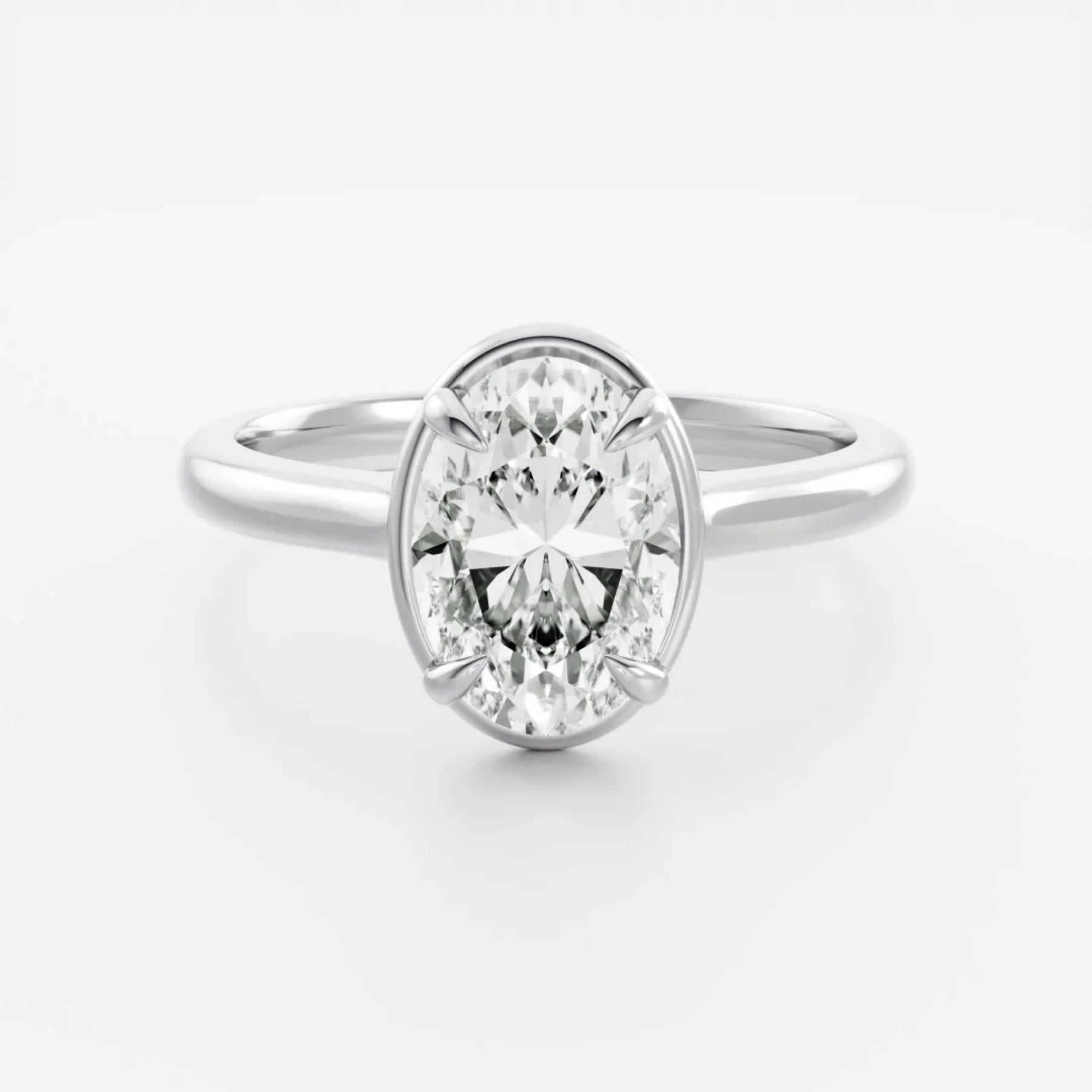2.0CT Bezel Set Oval Cut Lab Grown Diamond Cathedral Engagement Ring