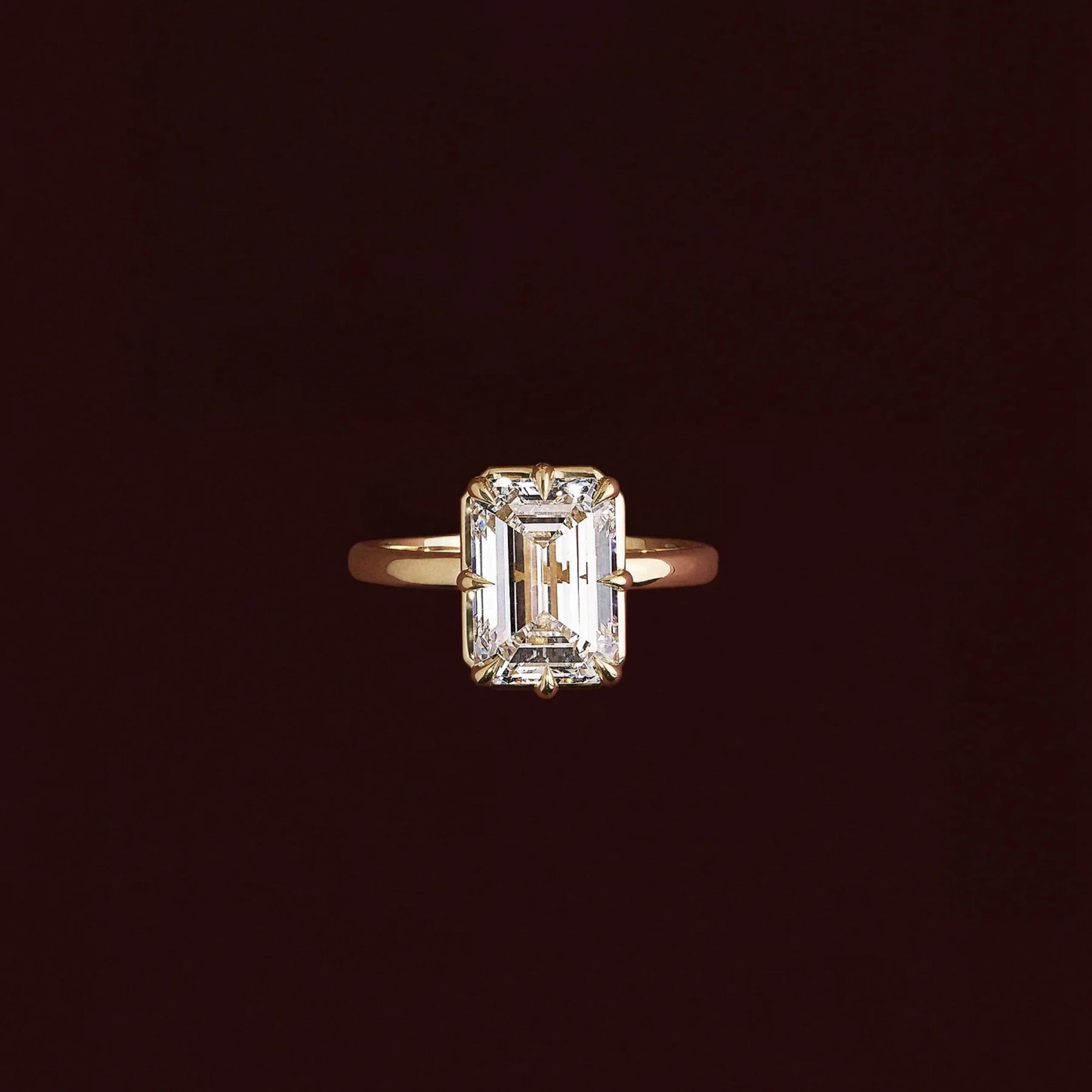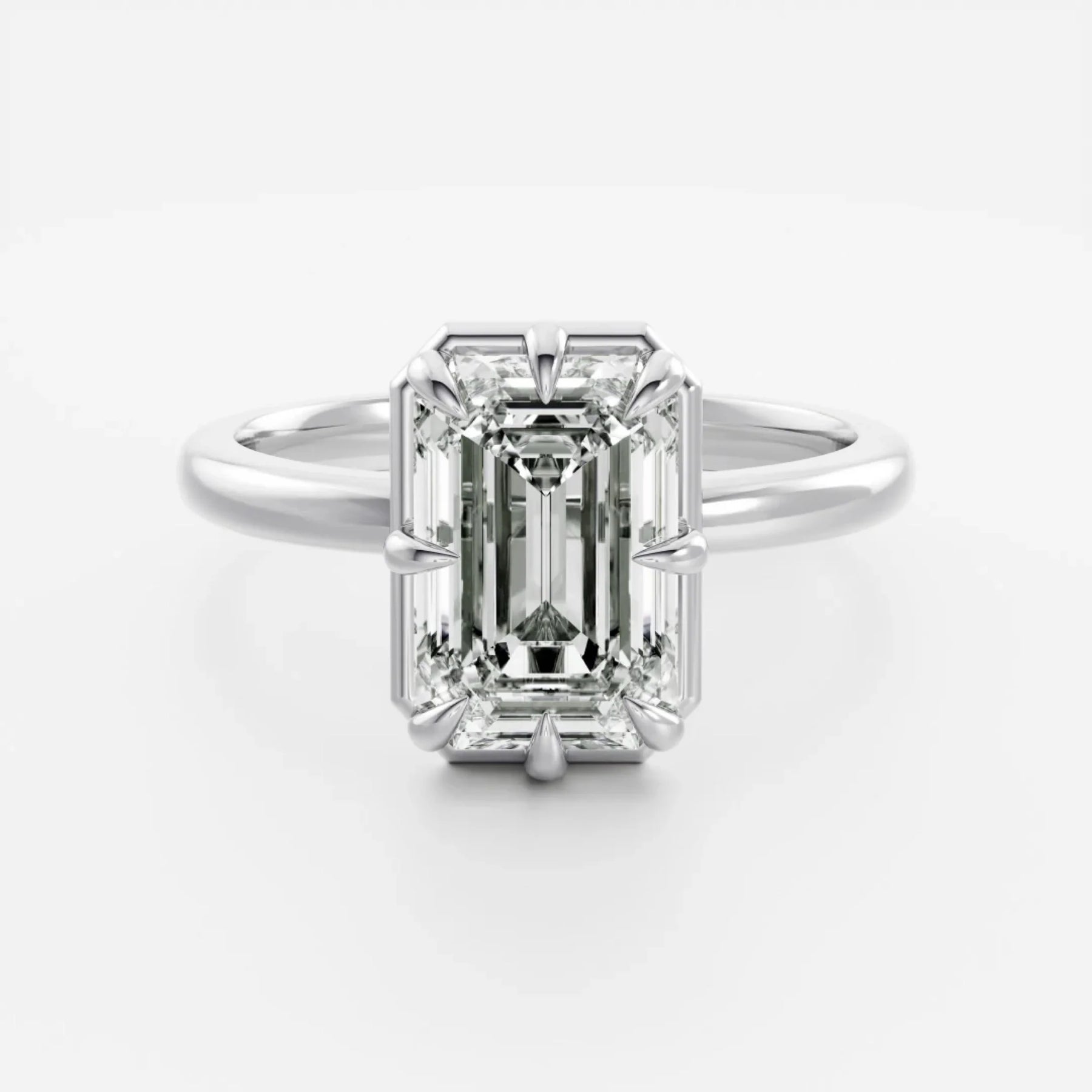 This 2.50CT Bezel Set Emerald Cut Lab Grown Diamond Solitaire Engagement Ring radiates modern elegance through its clean lines and striking clarity. The emerald-cut center stone is encased in a smooth bezel setting, offering a sleek, contemporary look while maximizing security and brilliance. Its elongated shape adds a refined, sophisticated presence that flatters the finger beautifully. Ethically crafted and meticulously finished, this ring is perfect for those who admire minimalist luxury with a bold, timeless appeal.