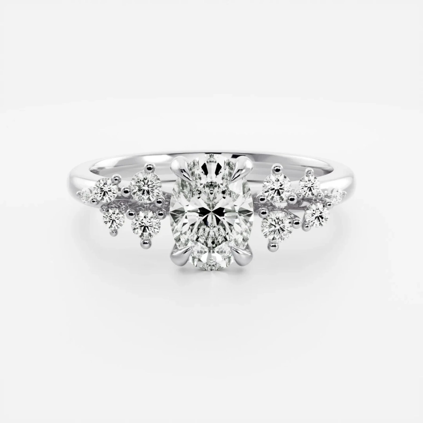 1.50CT Oval Cut Lab Grown Diamond Cluster Engagement Ring