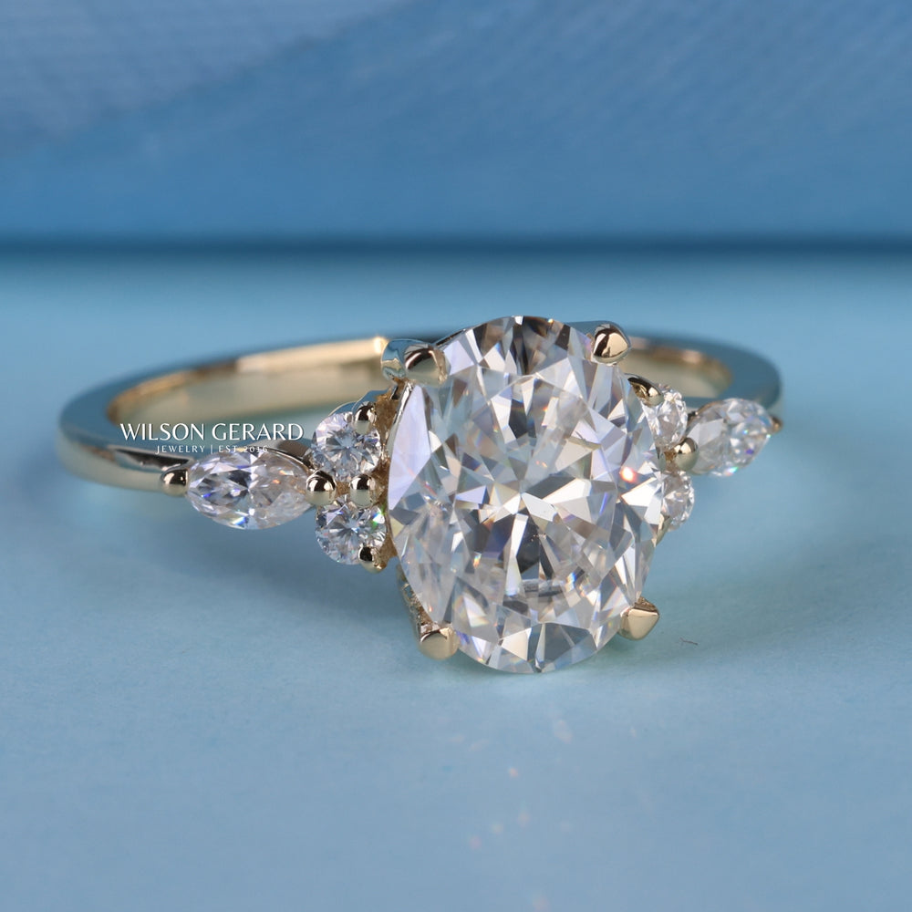 2.0CT Oval E/VS1 Lab Grown Diamond Cluster Engagement Ring