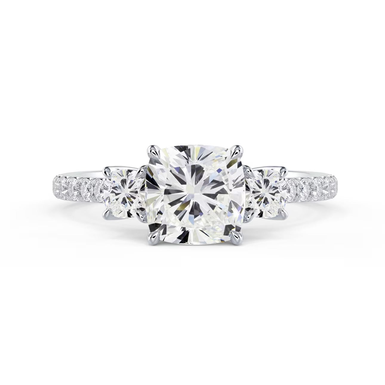 1.50CT Cushion E/VS1 Lab Grown Diamond Three Stone Pave Engagement Ring