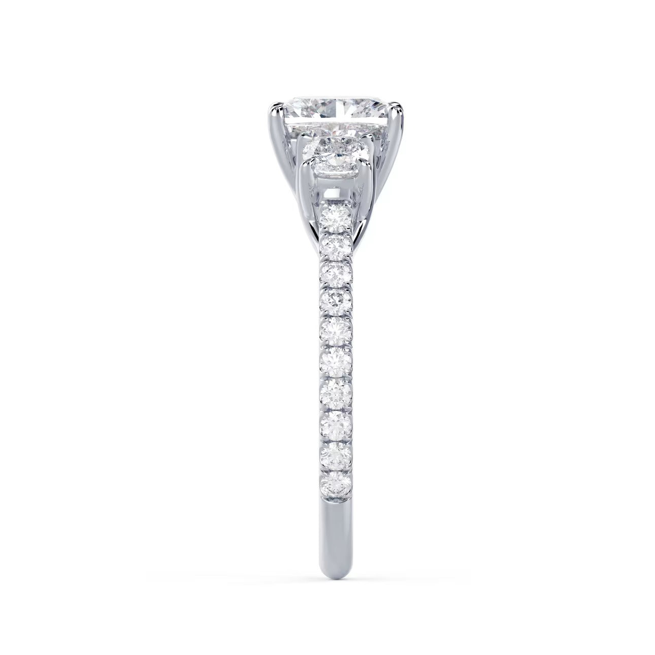 The 1.50CT Cushion E/VS1 Lab Grown Diamond Three Stone Pave Engagement Ring is a stunning symbol of love and commitment, making it a perfect wedding ring or a timeless favorite among elegant engagement rings. Designed for every engagement rings couple, its ethically crafted E/VS1 Cushion cut lab grown diamond sparkles at the center, flanked by two dazzling side stones that represent past, present, and future, all set on a shimmering pave band for added brilliance. A true treasure of romance and style, this design shines among the most unique engagement rings and sophisticated unique diamond rings, beautifully capturing the everlasting elegance of timeless engagement rings.