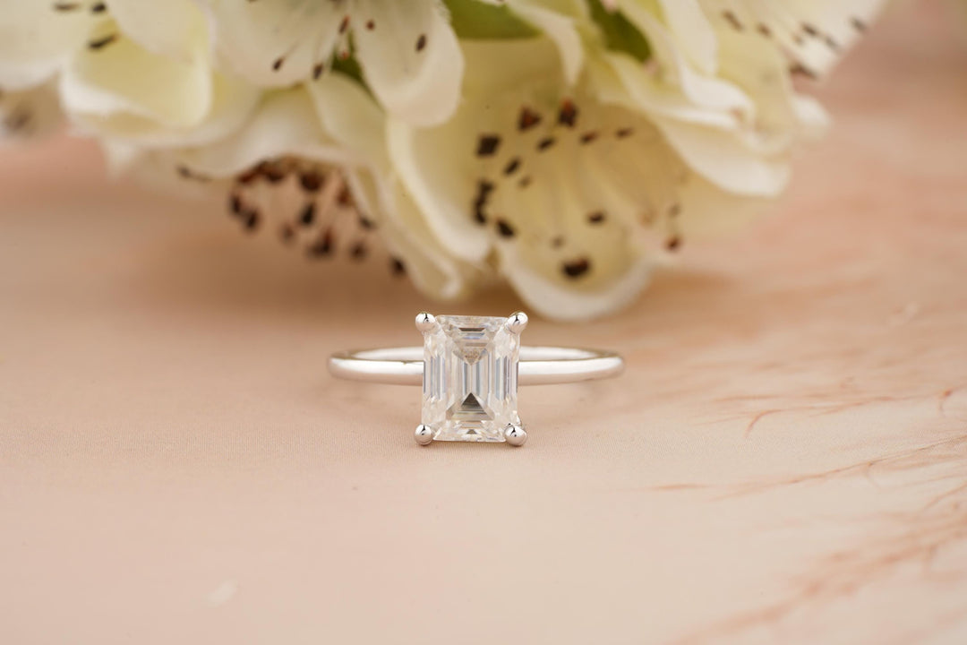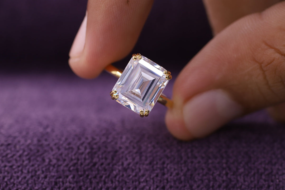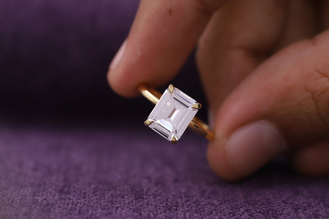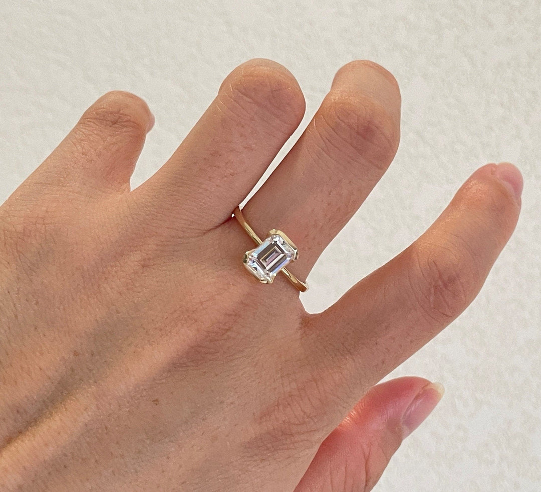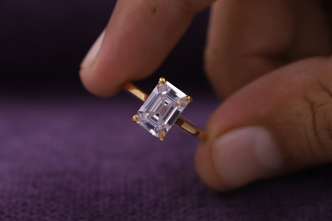 "A timeless fusion of elegance and brilliance, the emerald-cut diamond ring captivates with its sleek, elongated facets, offering a sophisticated and luxurious appeal. Perfect for those who appreciate refined beauty. π"