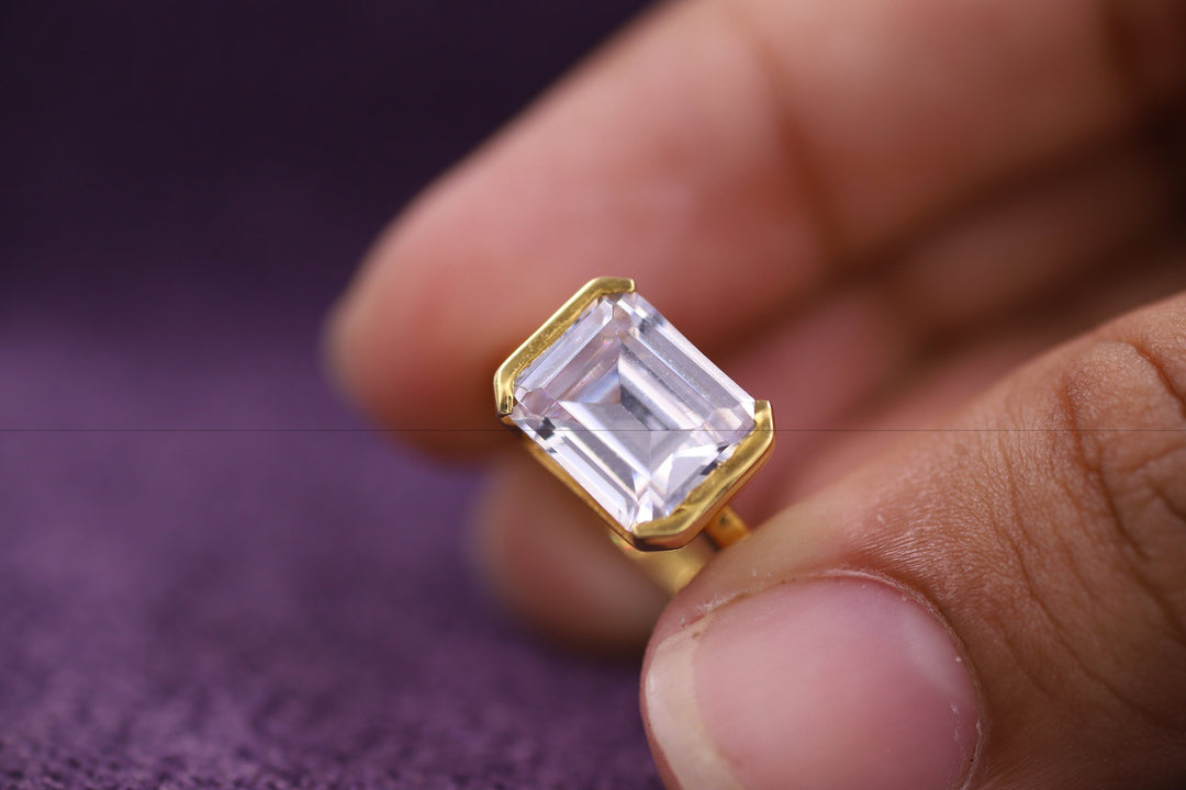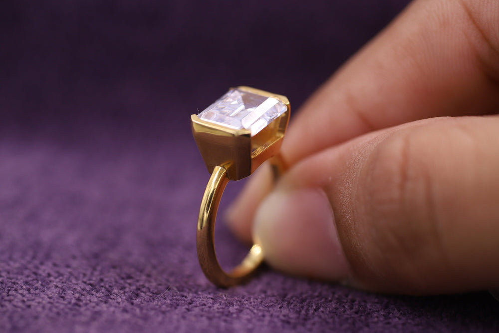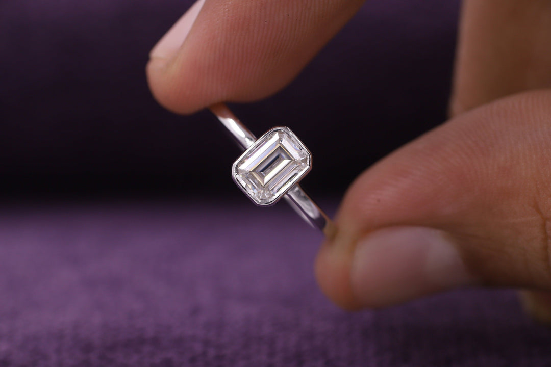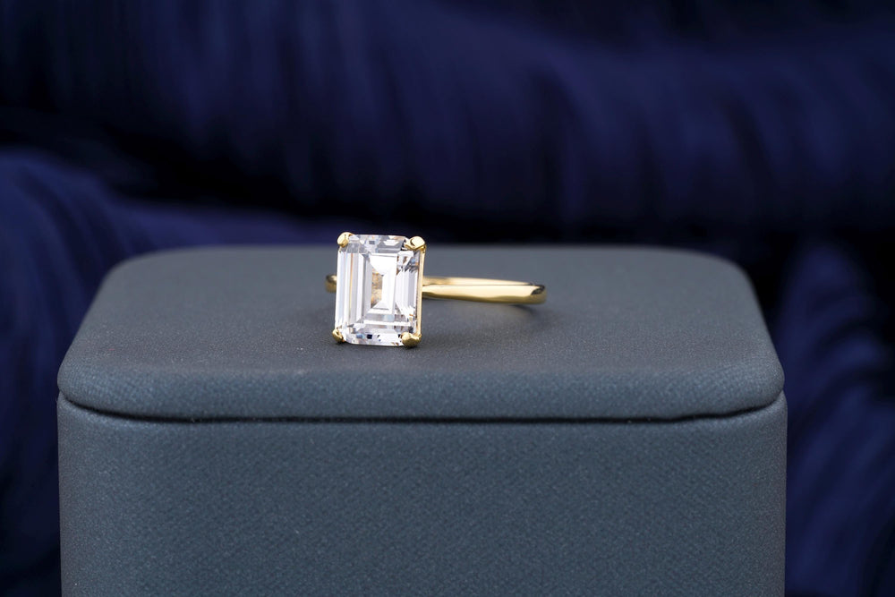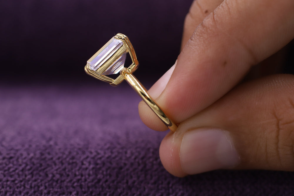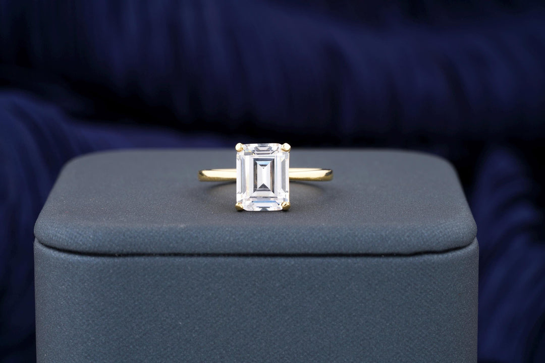 "A timeless fusion of elegance and brilliance, the emerald-cut diamond ring captivates with its sleek, elongated facets, offering a sophisticated and luxurious appeal. Perfect for those who appreciate refined beauty. π"