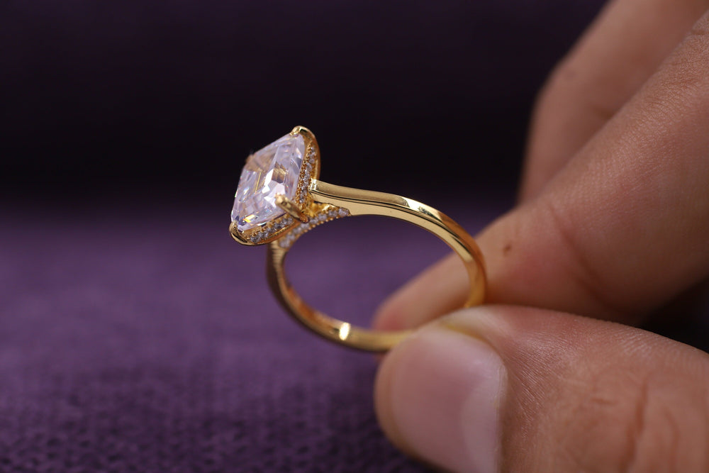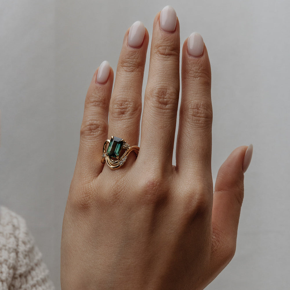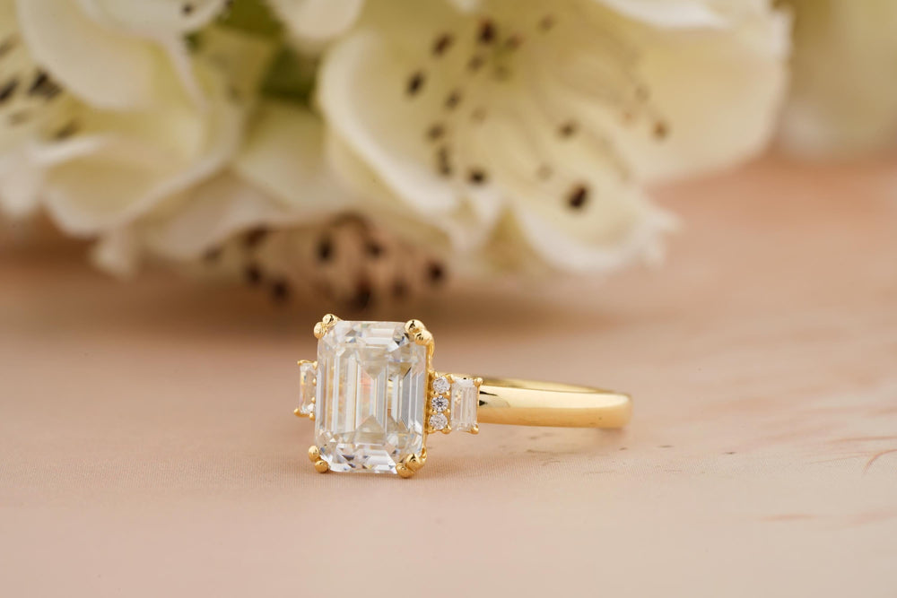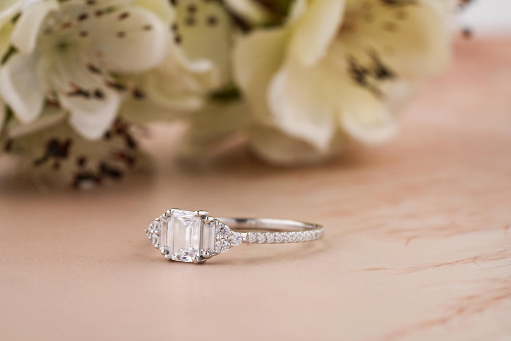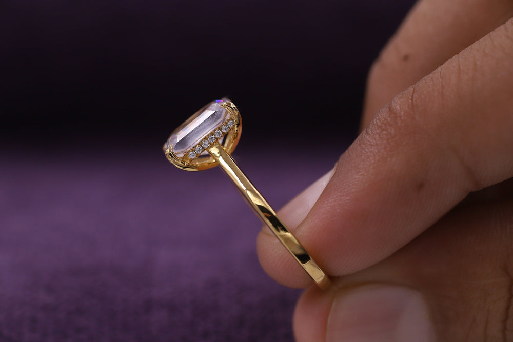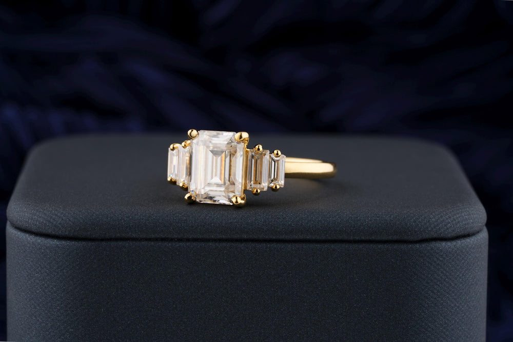 "A timeless fusion of elegance and brilliance, the emerald-cut diamond ring captivates with its sleek, elongated facets, offering a sophisticated and luxurious appeal. Perfect for those who appreciate refined beauty. π"
