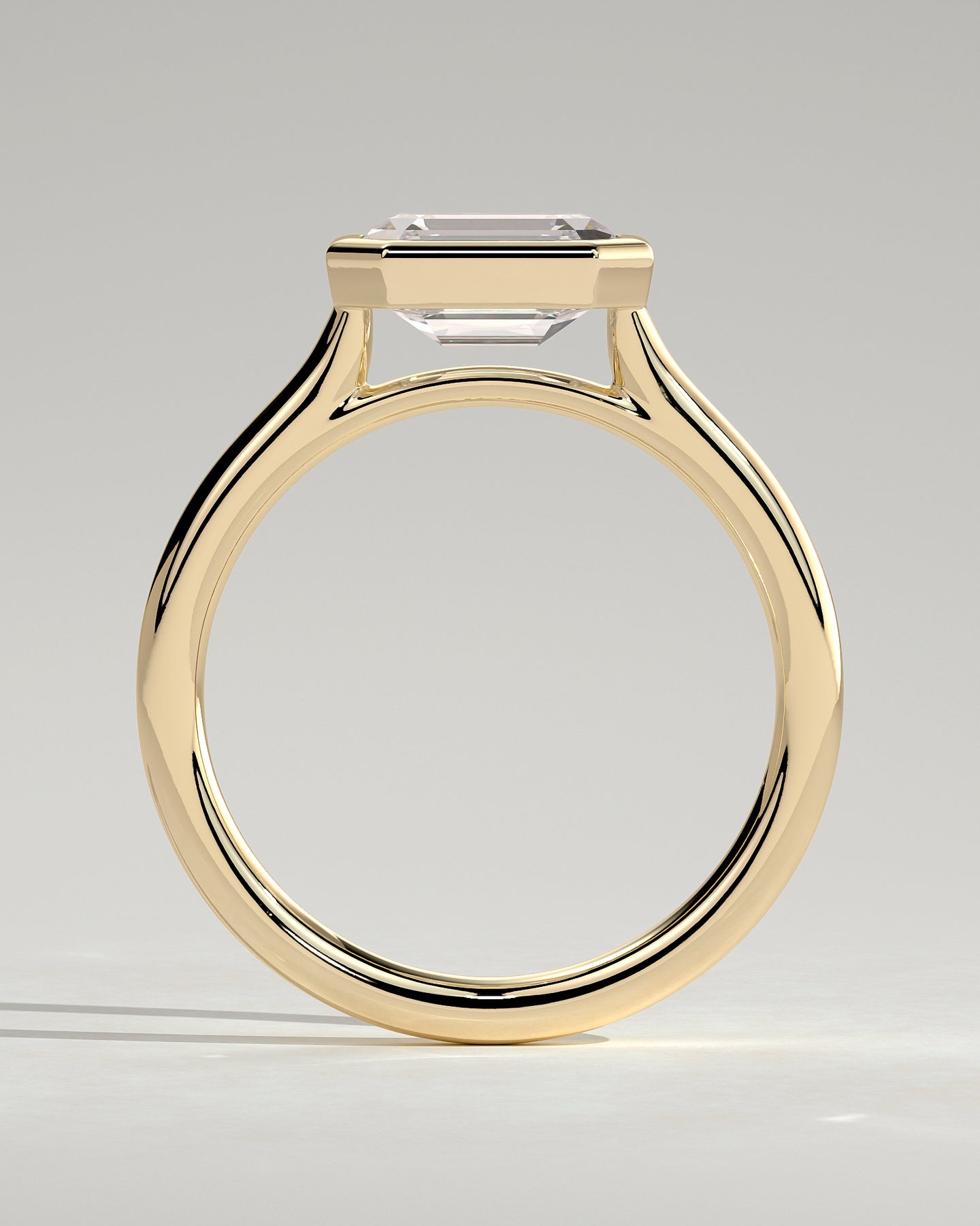 Make a modern statement with this 1.5ct East-West Emerald Cut E/VS2 Bezel Setting Engagement Ring. This ring blends contemporary style with timeless elegance, showcasing a horizontally set emerald-cut diamond with E color and VS2 clarity, all secured in a sleek bezel setting. Perfect for proposals or anniversaries, it offers refined craftsmanship and a bold, sophisticated sparkle.