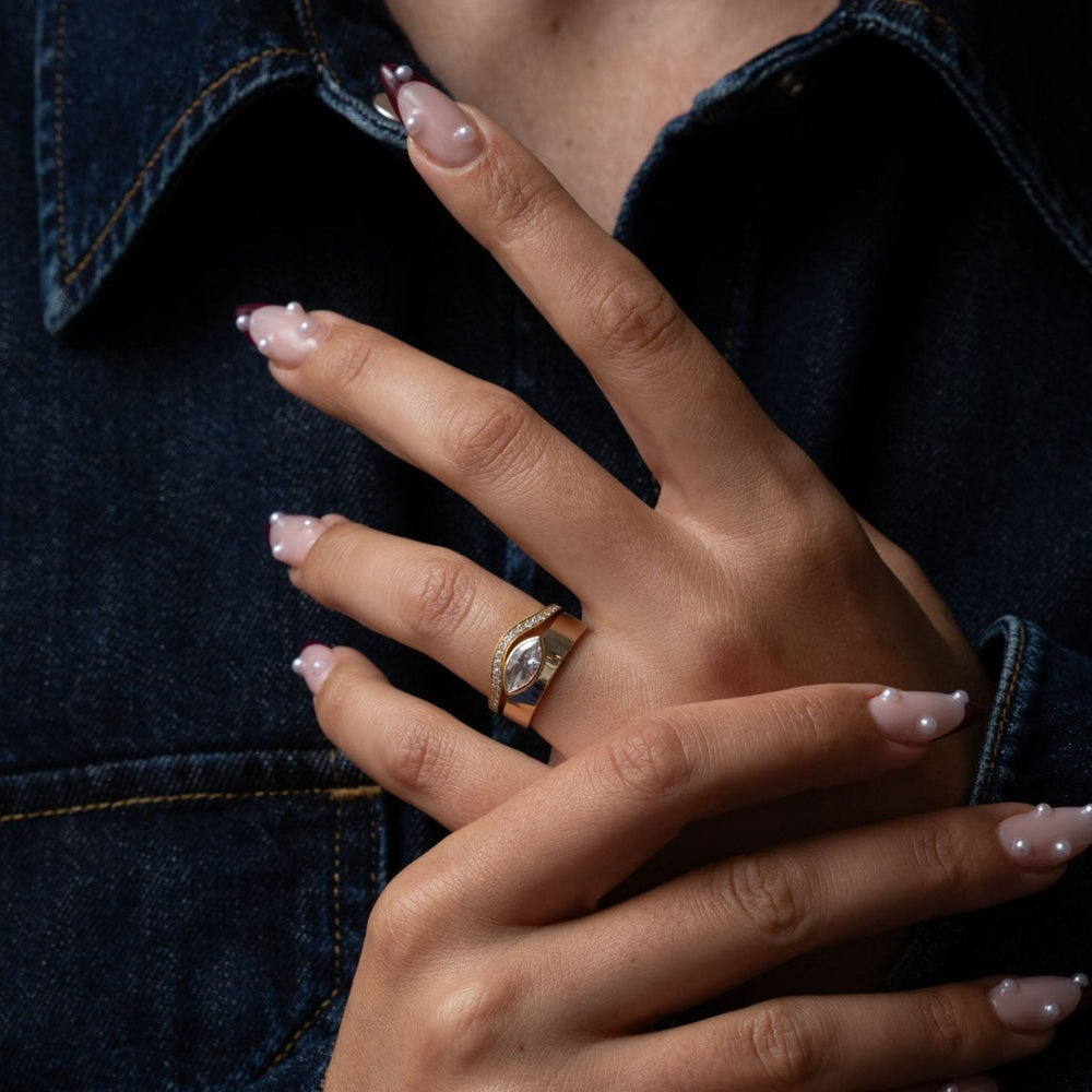 "A marquise diamond ring features an elongated, boat-shaped diamond with pointed ends, maximizing brilliance and finger coverage. Its unique silhouette exudes vintage charm while offering a modern, sophisticated appeal. Perfect for those who love elegance with a touch of royalty! 👑💎"
