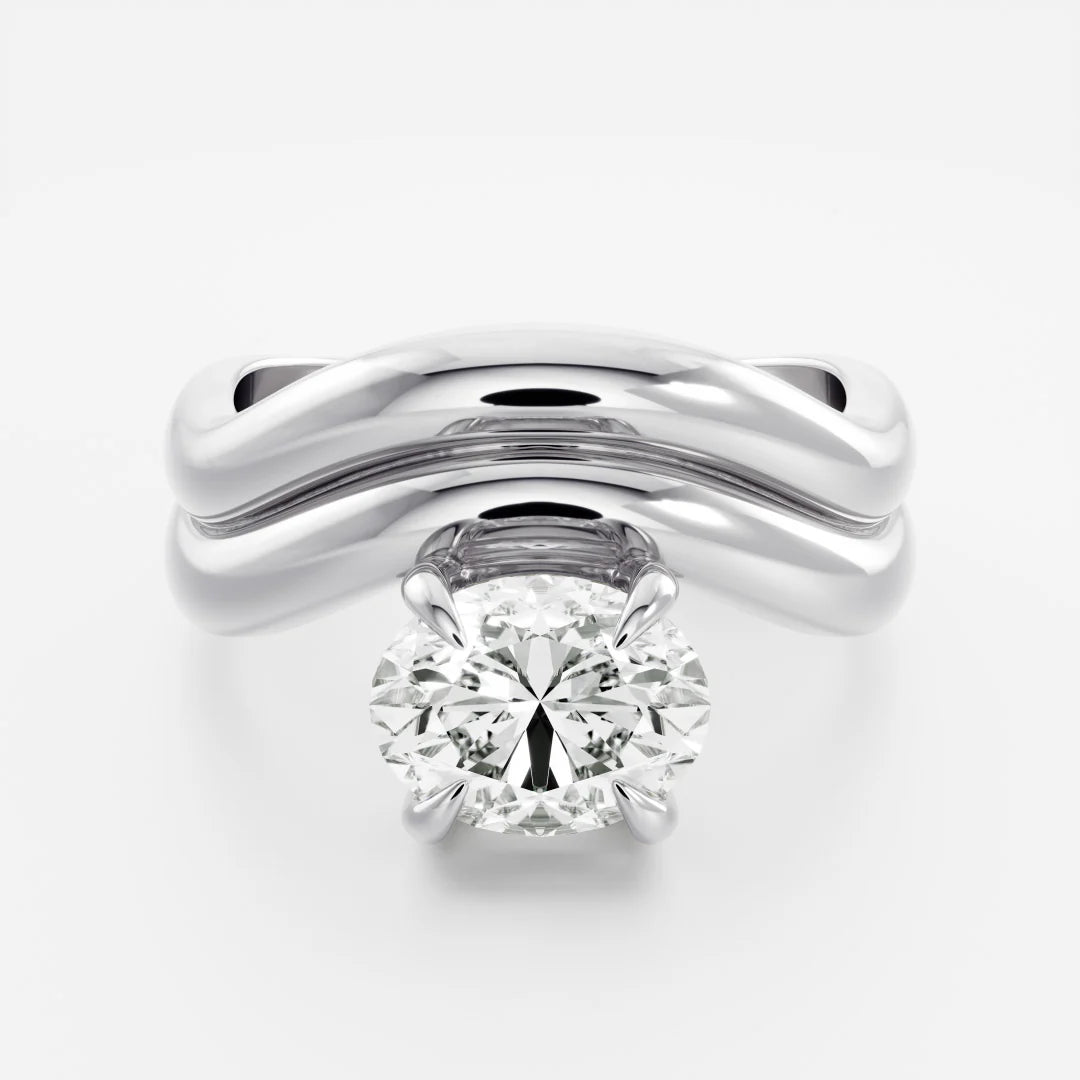 The 1.0CT Oval Cut E/VS1 Lab Grown Diamond Double Solitaire Curved Band Engagement Ring is a graceful fusion of elegance and modern style, perfect for admirers of timeless engagement rings. Its oval cut diamond sparkles brilliantly, beautifully complemented by the sleek double solitaire curved band, making it stand out among diamond engagement rings. An exquisite choice as a wedding ring, it symbolizes everlasting love and refinement. For brides seeking unique engagement rings, the curved band design offers a contemporary yet romantic touch. This ring is ideal for anyone who desires unique diamond rings that embody brilliance and sophistication.