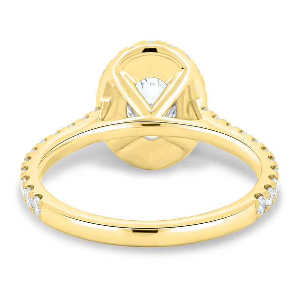 The 1.50CT Oval Cut E/VS Lab Grown Diamond Halo Pave Engagement Ring exudes timeless sophistication and breathtaking sparkle, making it a stunning wedding ring and a remarkable choice among elegant engagement rings. Designed for every engagement rings couple, its 1.50-carat E/VS lab grown oval diamond dazzles with exceptional brilliance, surrounded by a shimmering halo and a delicate pave-set band for added glamour. Ethically crafted and masterfully designed, this ring stands out among unique engagement rings and exquisite unique diamond rings, perfectly embodying the everlasting charm of timeless engagement rings.