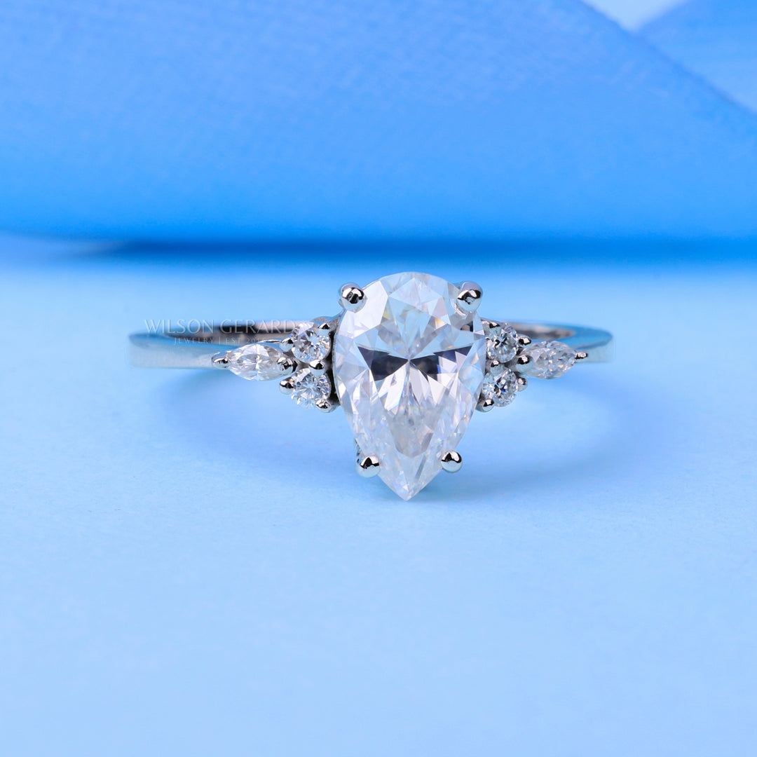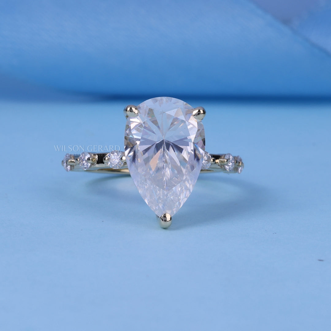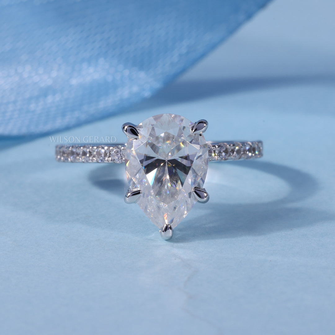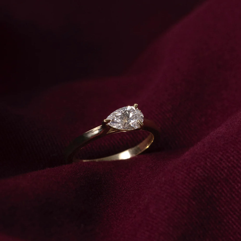 "A pear diamond ring combines a round cut's brilliance with a marquise's sophistication, creating a unique teardrop shape. Symbolizing love and individuality, this design elongates the finger and maximizes sparkle. Perfect for those who seek elegance with a modern touch. πβ¨"