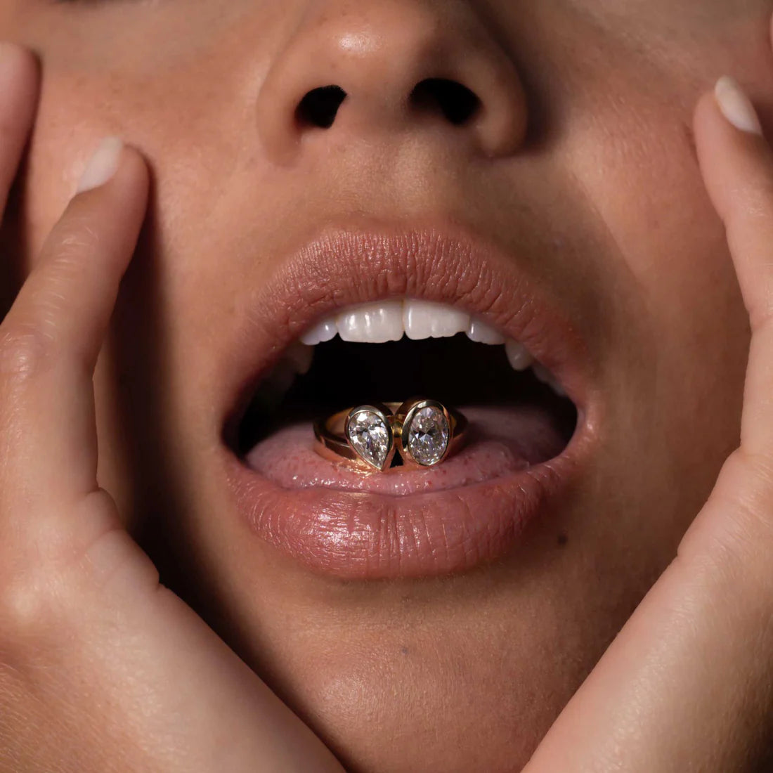 0.50CT Bezel Set Pear & Oval Cut Lab Grown Diamond Unique Toi Et Moi Engagement Ring
