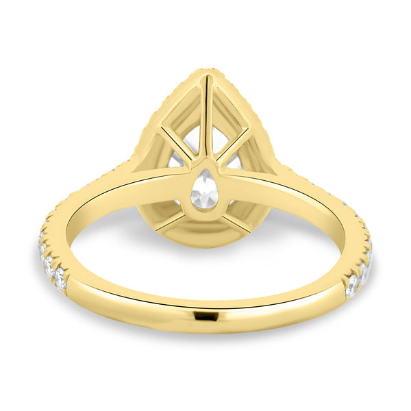 The 1.50CT Pear Cut E/VS2 Lab Grown Diamond Halo Cathedral Pave Engagement Ring is a dazzling blend of elegance and sustainability, making it a perfect wedding ring or a radiant choice among timeless engagement rings. Designed for every engagement rings couple, its ethically crafted E/VS2 lab grown diamond sparkles with fire, surrounded by a brilliant halo and elevated in a cathedral setting with a shimmering pave band. A true treasure of love, it stands among the most unique engagement rings and sophisticated unique diamond rings, beautifully reflecting the everlasting charm of timeless engagement rings.