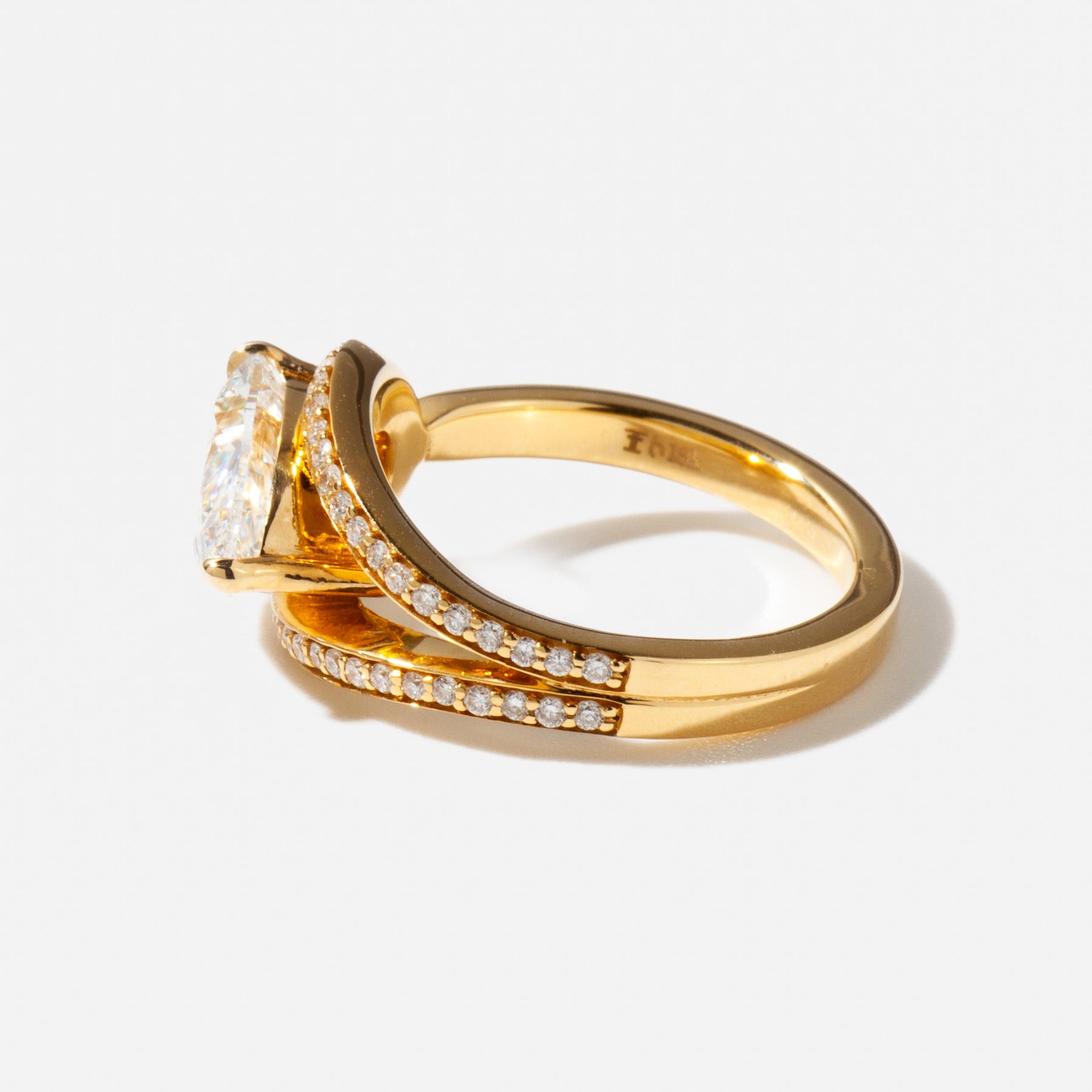 The 2.50CT East West Pear Cut E/VS1 Lab Grown Diamond Engagement Ring is a bold and elegant example of timeless engagement rings. Its striking pear-cut diamond, set horizontally in an east-west orientation, creates a contemporary and eye-catching look among diamond engagement rings. Perfect as a sophisticated wedding ring, it symbolizes enduring love and modern style. For brides seeking unique engagement rings, the east-west pear cut offers a distinctive and innovative design. This ring is ideal for anyone who desires unique diamond rings that radiate brilliance, elegance, and individuality.