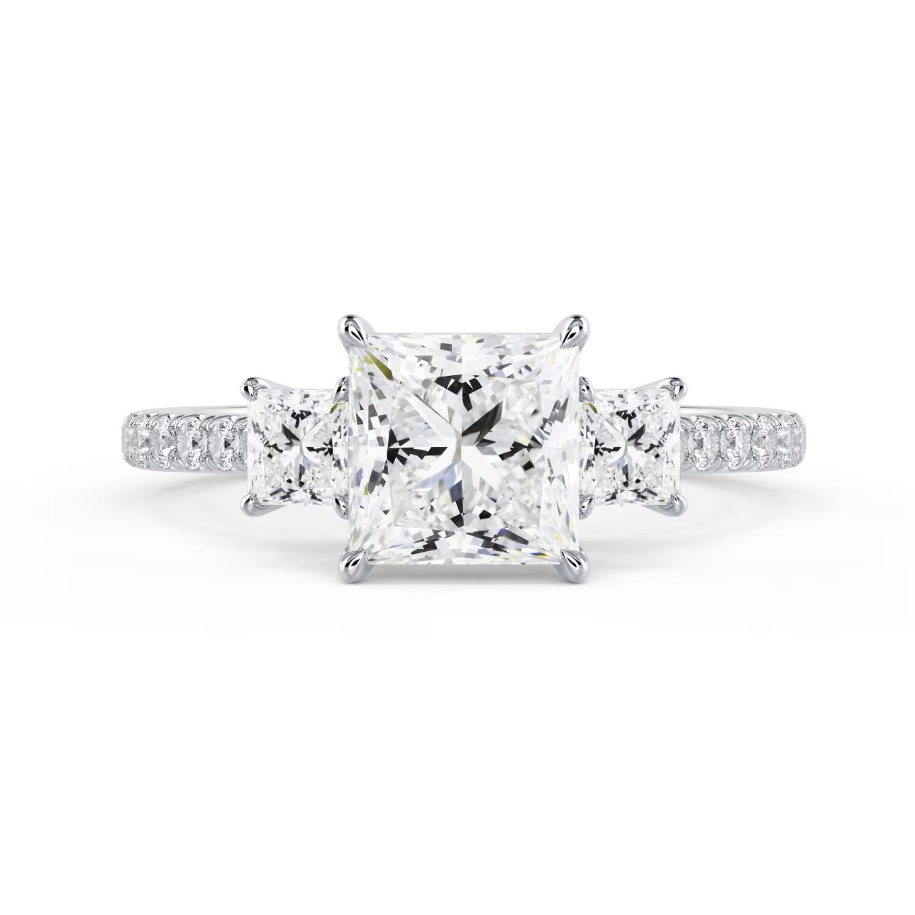 1.50CT Princess E/VS1 Lab Grown Diamond Three Stone Pave Engagement Ring