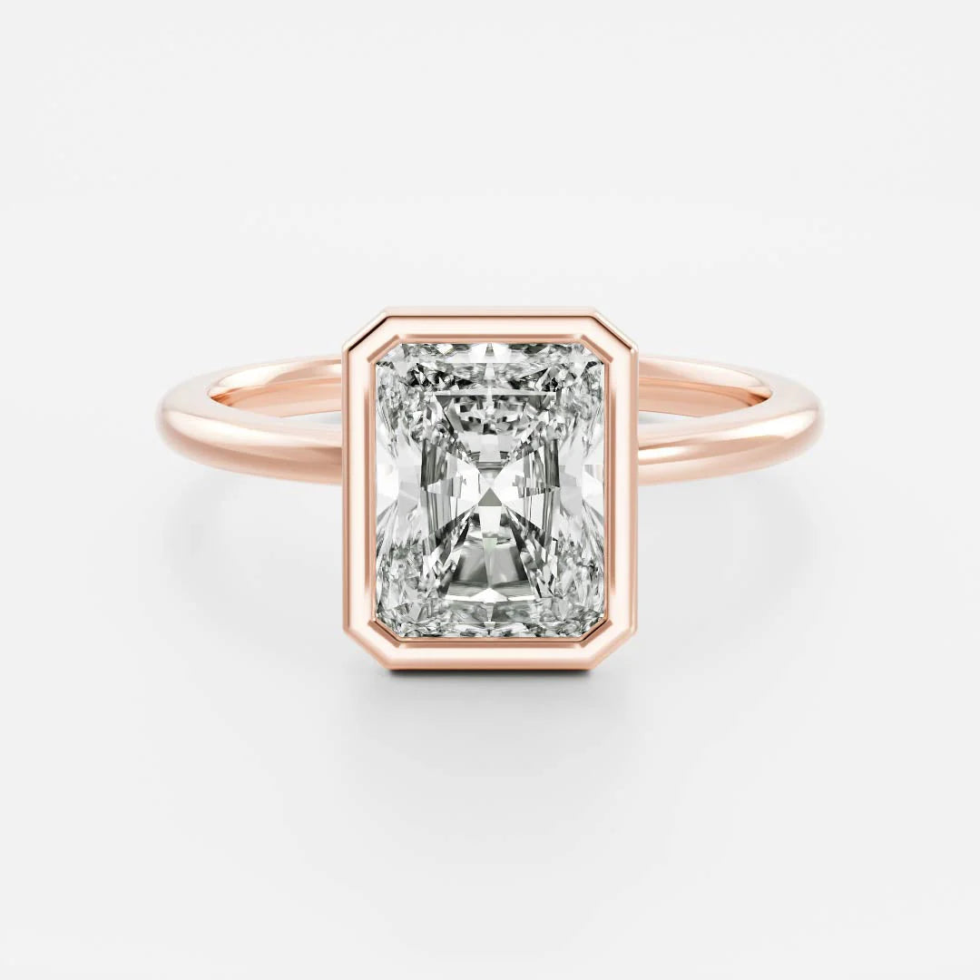 2.0CT Bezel Set Radiant Cut Lab Grown Diamond Solitaire Engagement Rings